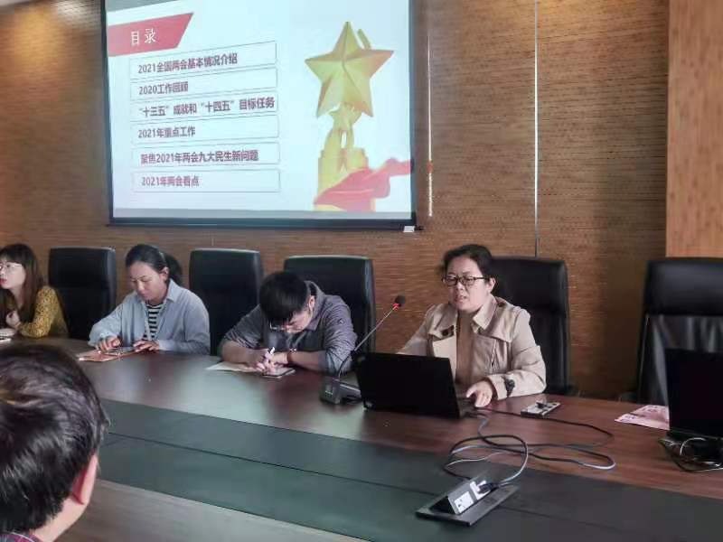 党支部书记张雅利以“2021聚焦全国两会”为题讲授专题党课,分享了全国两会基本情况、“十三五”成就和“十四五”目标任务、两会九大民生新问题和看点等五个方面的核心内容,详实细致地为全体党员讲授了一堂精彩的党课,鼓励线粒体所全体师生坚定信心、砥砺前行,奋力在科学创新服务人民健康领域取得突破。