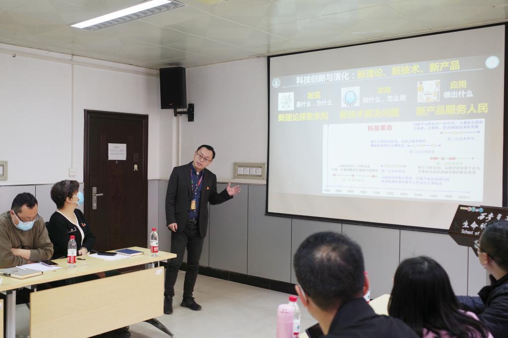 与会人员结合实际工作分享党的二十大精神学习体会。生命开元副院长张建保表示,要加强基础学科建设,构建高水平教育教学团队,加强培养学生创新思维、提升创新能力,为行业和地方发展贡献交大力量。赵永席教授表示,要用发展的眼光看问题,跳出交大看交大、跳出学科看自己,认清发展中仍存在的问题,提出针对性解决方法,不断加强科研平台建设、着力提升人才培养质量。孙晓龙教授表示,科学研究同样需要自我革命,面对新形势、新挑战,我们科研工作者要勇于攻坚“卡脖子”问题,以钉钉子的精神攻坚克难。