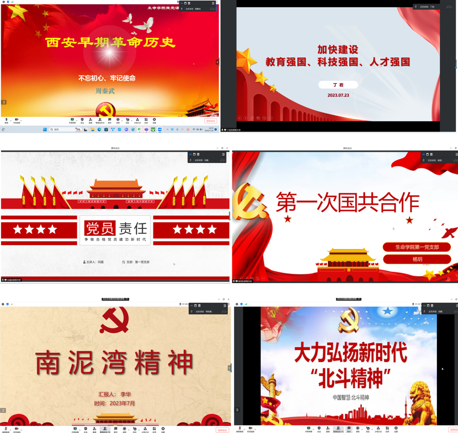 周秦武、丁岩、闫菡、杨玥、李华和刘颖六位党员同志分别做了题为《西安早期革命历史》《加快建设教育强国、科技强国、人才强国》《党员责任——争做合格党员建功新时代》《第一次国共合作》《南泥湾精神》和《大力弘扬新时代“北斗精神”》的微党课。