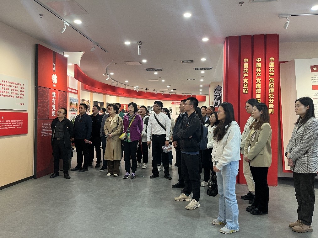 西安市警示教育基地展陈面积2600平方米,展览以习近平总书记关于党风廉政建设和反腐败斗争的重要论述为主线,通过图文展示、视频展播、3D情景重现等方式和科技手段,生动展示了我党反腐倡廉制度建设的历史沿革。在基地讲解员的引导下,同志们认真聆听讲解,沉浸式的现场学习,为师生党员上了一堂鲜活的思想政治和党纪法规教育课,同时在灵魂深处敲响了警钟,使大家更好铭记党的初心和使命,坚定对党忠诚、担当作为的决心。