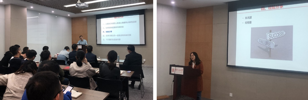 博士生朱鸿源、何榕晏分享了个人读研的学习生活经验,为新生们提供了大量具有可操作性的学习和缓解压力的方法。